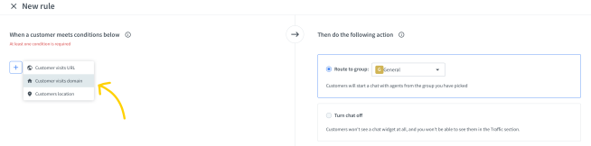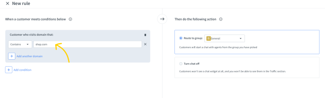 Go to Settings>Chat settings>Routing rules and click on Add new rule.