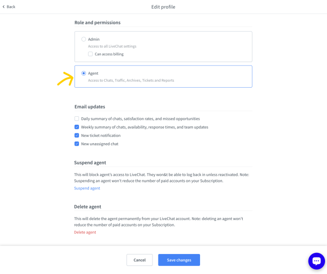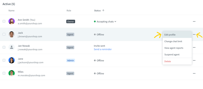 There are three roles in LiveChat, each serving a different purpose. You can be either an owner, an administrator or an agent.