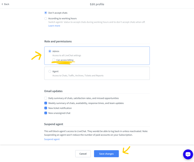 What’s more, they can manage subscription (same as owners). The access to Subscription can be added or removed for each admin separately.