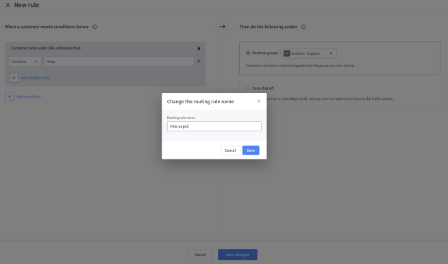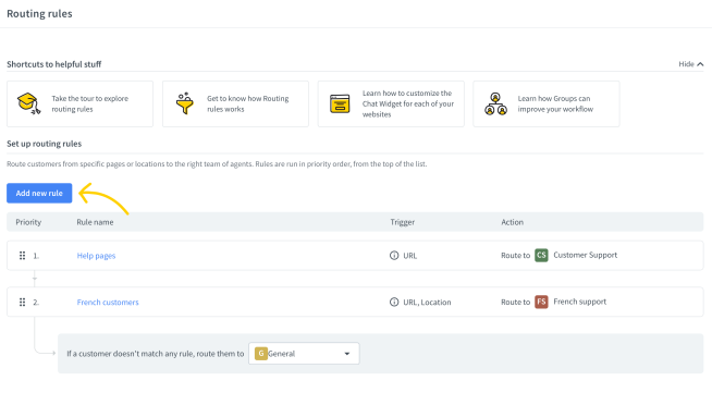 Routing rules allow you to direct customers from specific pages or locations to appropriate teams of your agents.