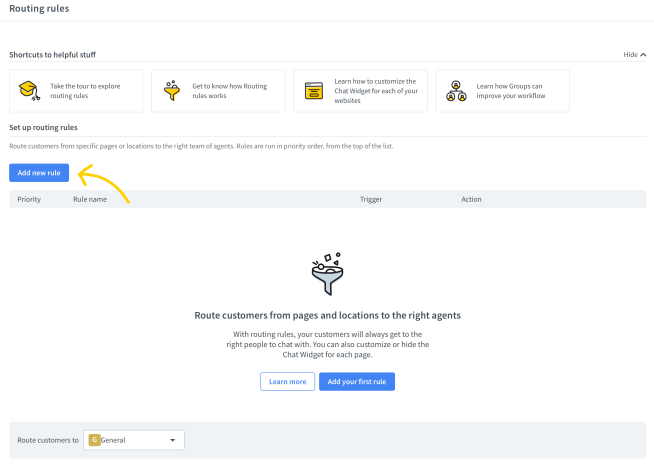 Go to Settings>Chat settings>Routing rules and click on Add new rule.