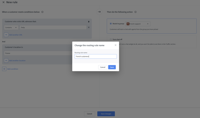 That’s it. The rule is enabled. Et voilà, customers from France will chat with your French-speaking team. All you need to do is make sure that the Chat Widget is customized to best serve your French-speaking customers.